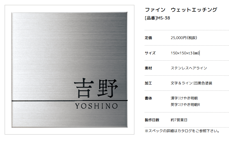 美濃クラフト MS-38 ファイン Fine ウェットエッチング ステンレス表札 [メーカー価格表の43%OFF+送料無料]