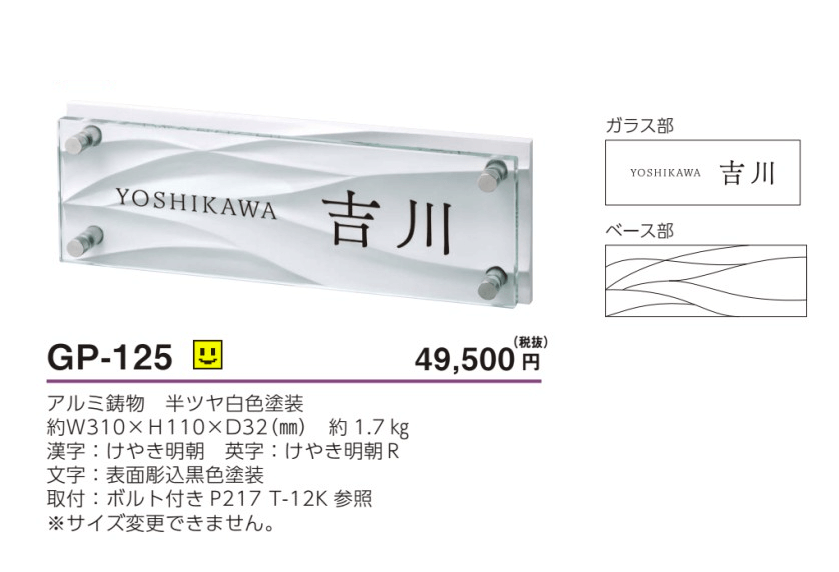 美濃クラフト GP-125 フラットガラス表札 310×110 [メーカー価格表の33%OFF+送料無料]