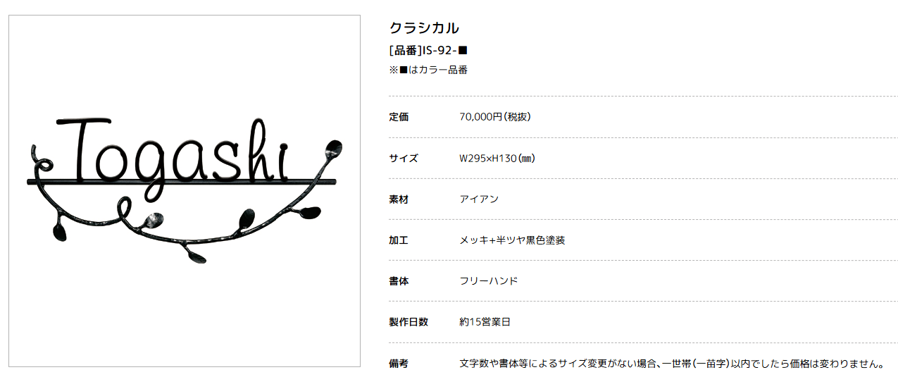 美濃クラフト IS-92- クラシカル(Classical) アイアンクラフト表札 [メーカー価格表の34%OFF+送料無料で販売]