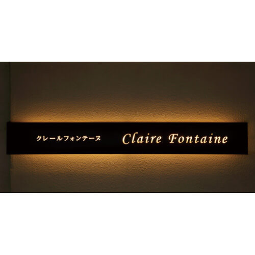 ◎切り抜き文字+裏当てアクリル:文字部分をレーザーで抜き、裏から乳白アクリルを当てて柔らかな光を演出
