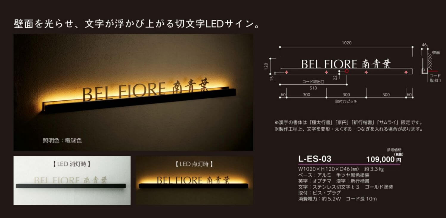 L-ES-03とは、壁面に設置するタイプのLEDサインで、