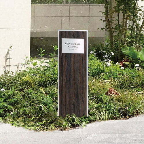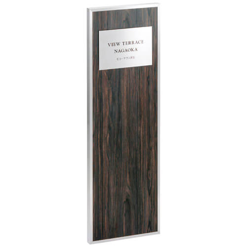 M-WD-11-とは、ステンレスと木目調パネルを組み合わせた、上質で景観に調和する館銘板です。