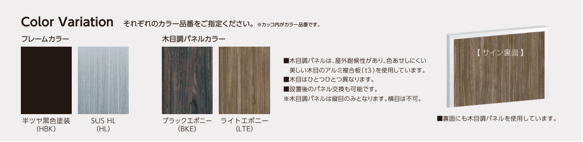 木目調パネル(ブラックエボニーまたはライトエボニー)を組み合わせ。