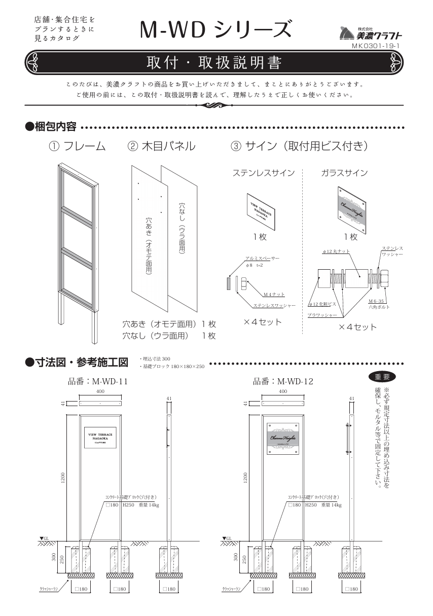 美濃クラフト M-WD-12- 館銘板/商業看板 自立式サイン
