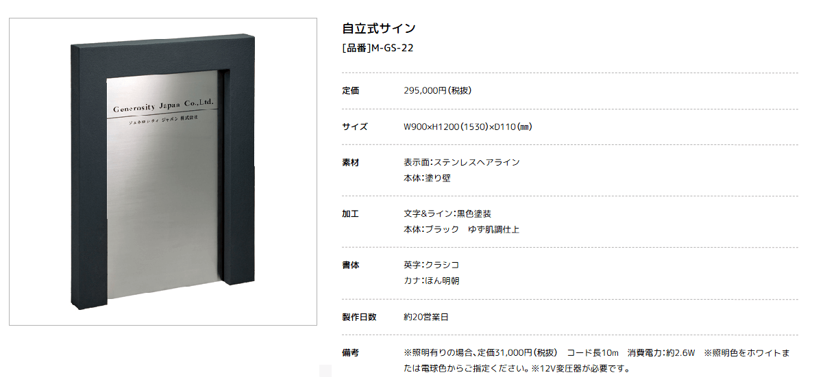 美濃クラフト M-GS-22- 館銘板/商業看板 自立式サインはこちら