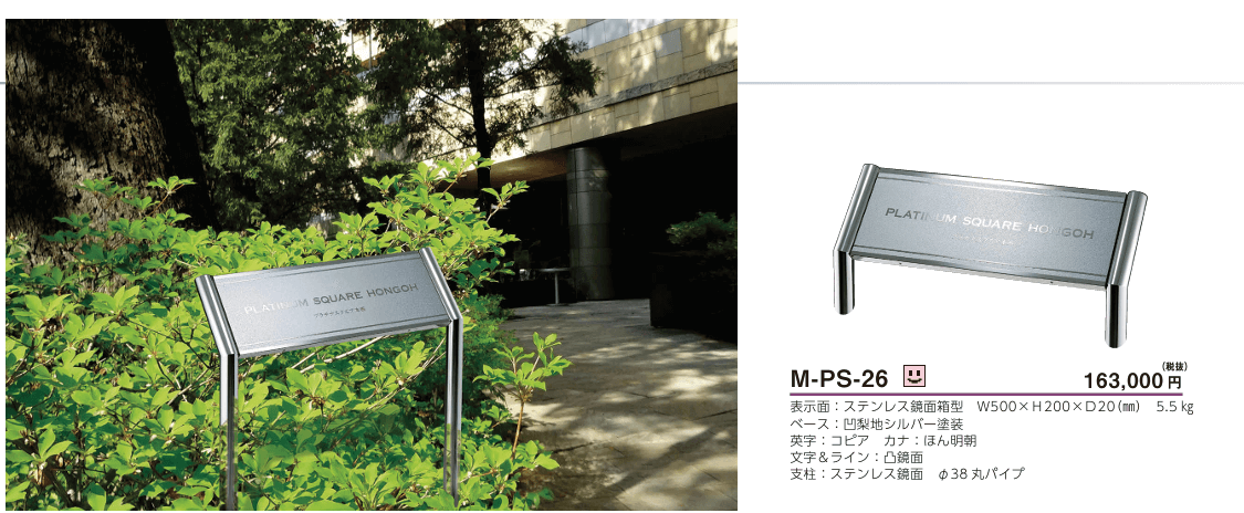 ◎ステンレス鏡面仕上げ:表示面・支柱ともに鏡面加工で、高級感と耐候性を両立
