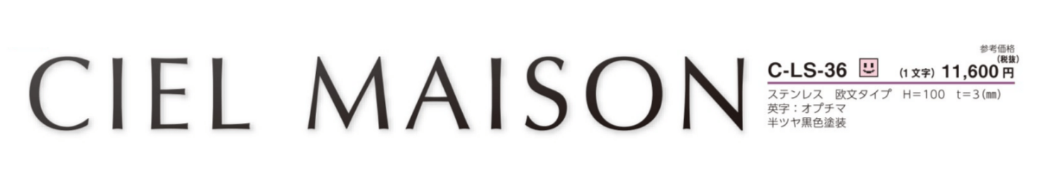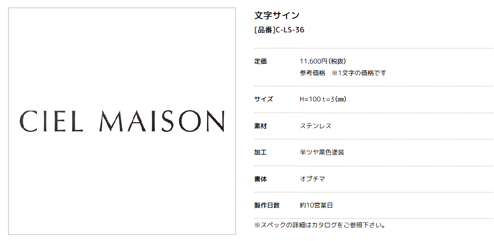 「C-LS-36」は、ステンレス素材をレーザーカットで精密に切り出した欧文専用の切文字サイン。