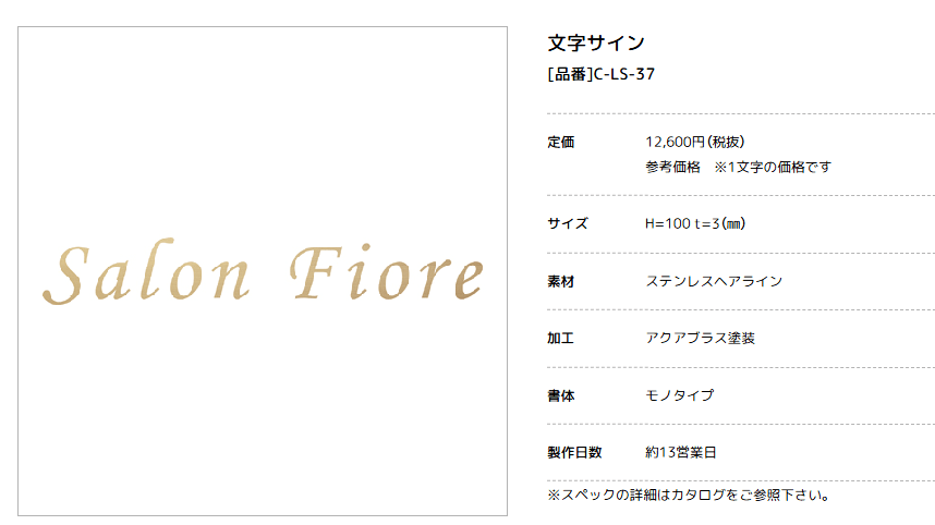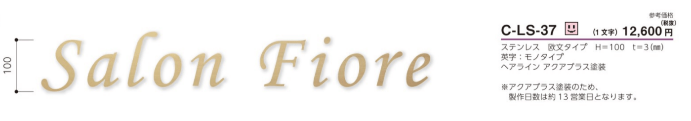 「C-LS-37」は、ステンレス素材をレーザーカットで精密に切り出した欧文専用の切文字サイン。