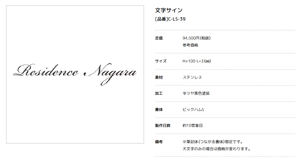 「C-LS-39」は、ステンレス素材をレーザーカットで精密に切り出した欧文専用の切文字サイン。