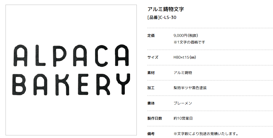 文字サイン アルミ鋳物文字
