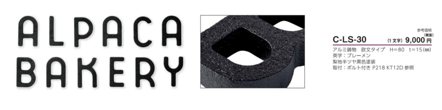 美濃クラフト C-LS-30 アルミ鋳物文字 館銘板/商業看板 文字サイン 1文字の金額です。 [メーカー価格表の35%OFF+送料無料で販売中]