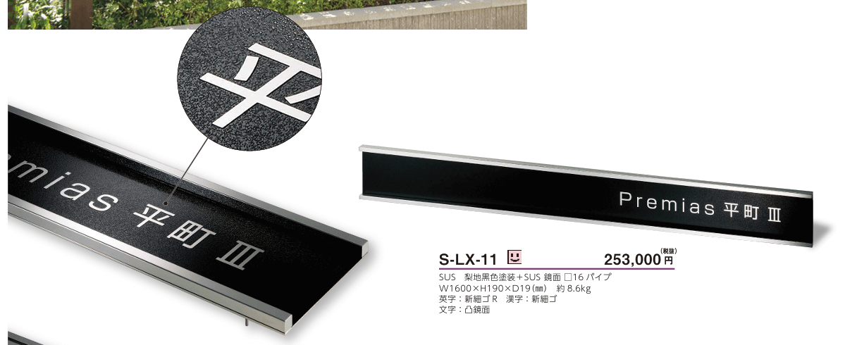 商業施設・集合住宅の館銘板として使われる“高級ライン”のモデル。