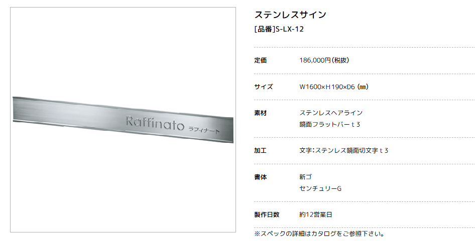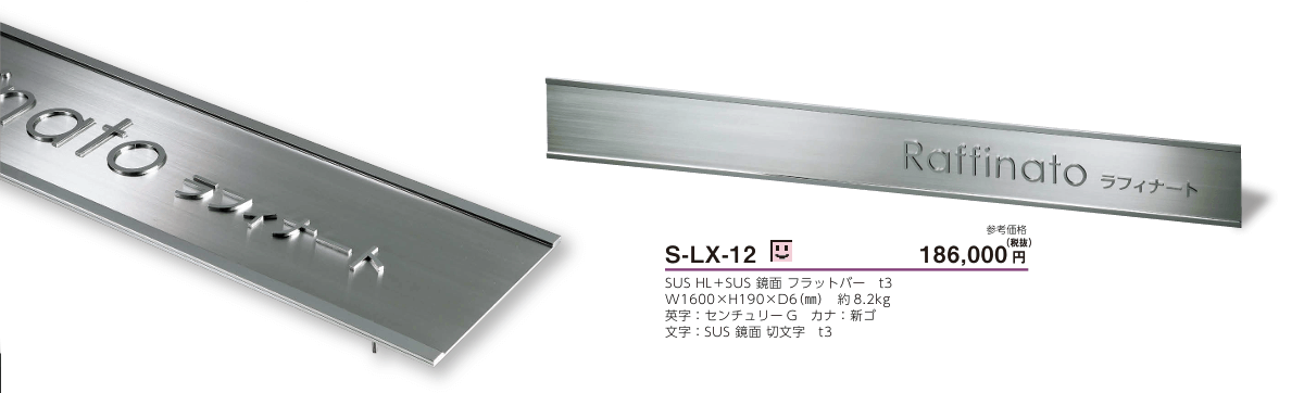 「S-LX-12」は、耐候性に優れたステンレスを丁寧に加工した高級感あるサイン。