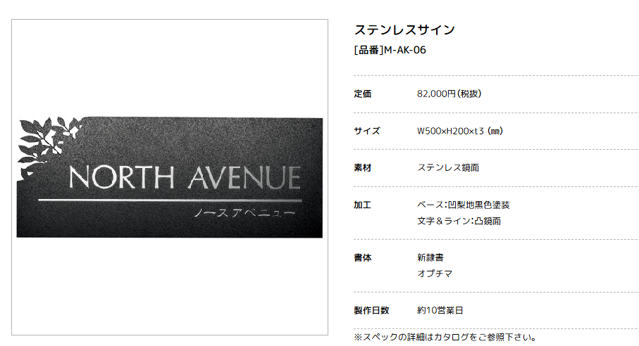 「M-AK-06」は、スリムで上質。建物の印象を引き締めるステンレスサイン