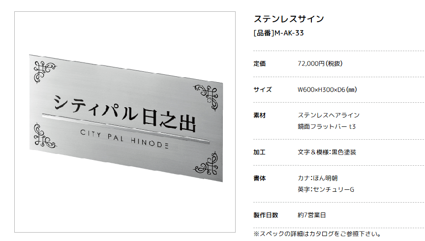 「M-AK-33」は、建物の外観を上質に仕上げる、横型ステンレスサイン