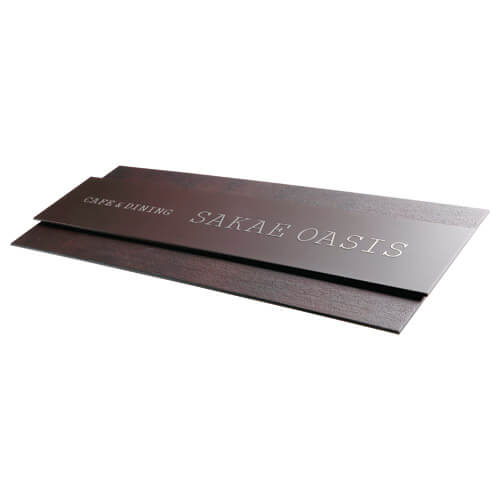 ◎カスタム対応:文字内容・書体・仕上げの変更が可能(要見積り) — レイアウト依頼書に基づく製作。