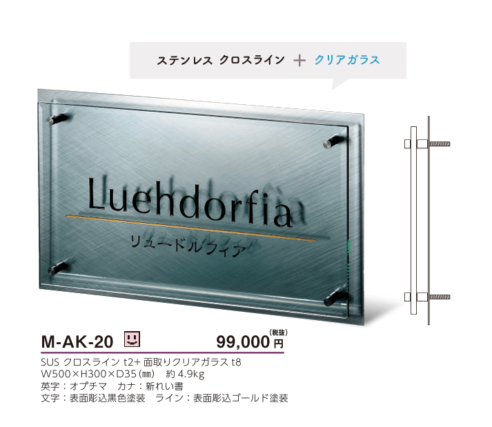 美濃クラフト M-AK-20 ステンレス+ガラスサイン 館銘板/商業看板
