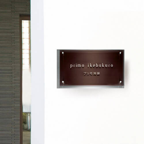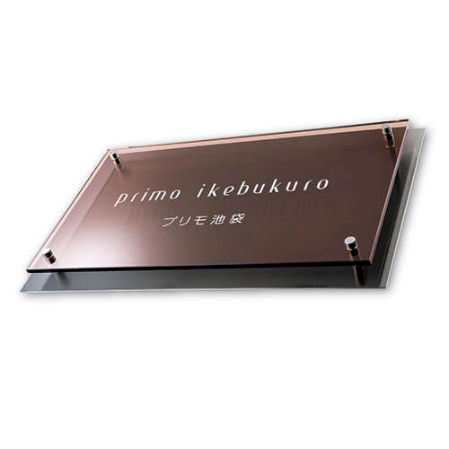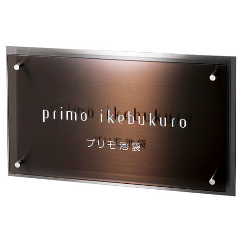 ステンレスの堅牢さとガラスの透明感が融合した、上質な館銘板・商業サイン。
