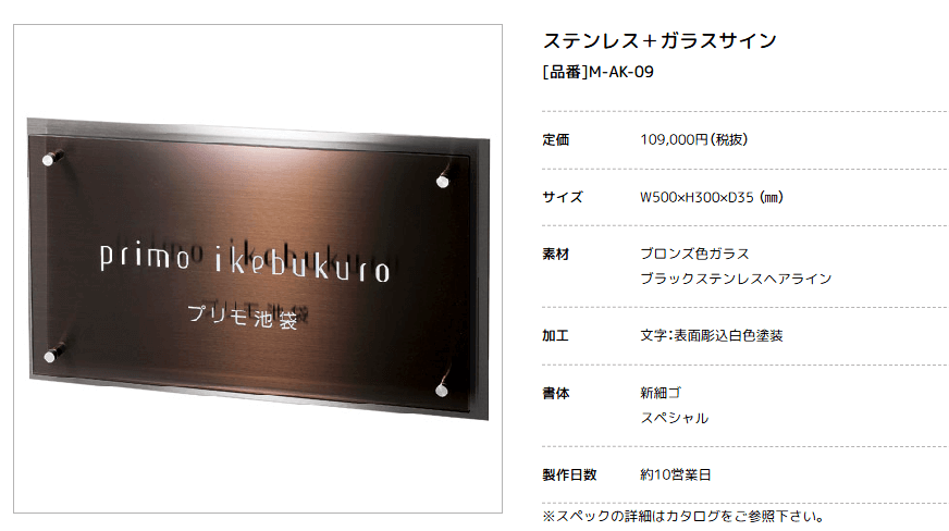 美濃クラフト M-AK-09 ステンレス+ガラスサイン 館銘板/商業看板 [メーカー価格表の35%OFF+送料無料で販売中]
