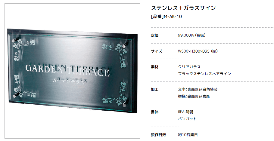 美濃クラフト M-AK-10 ステンレス+ガラスサイン 館銘板/商業看板