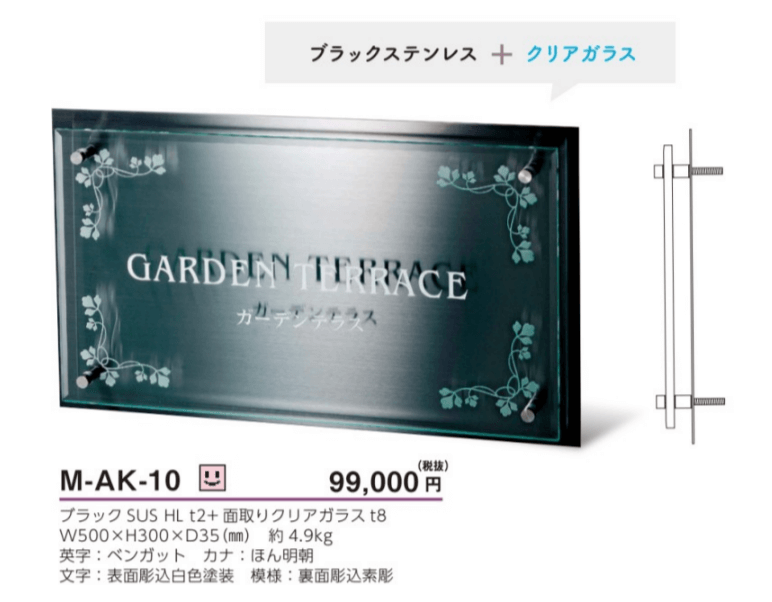 美濃クラフト M-AK-10 ステンレス+ガラスサイン 館銘板/商業看板 [メーカー価格表の35%OFF+送料無料で販売中]
