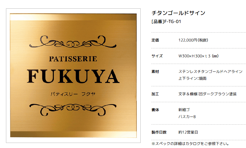 美濃クラフト F-TG-01 チタンゴールドサイン 館銘板/商業看板 [メーカー価格表の35%OFF+送料無料で販売中]