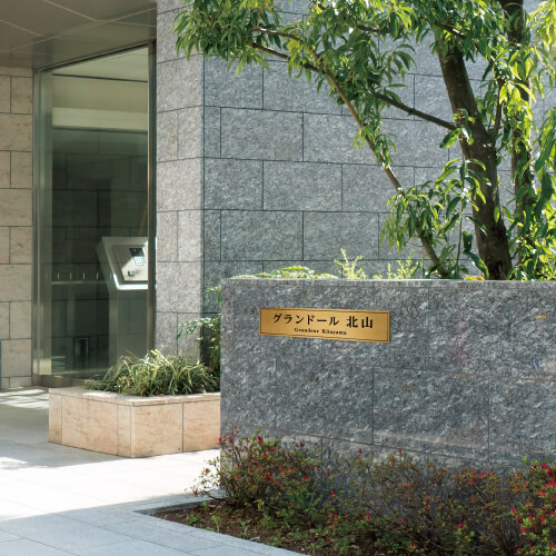 チタンゴールドの輝きでエントランスを格上げするスリム横長サイン。