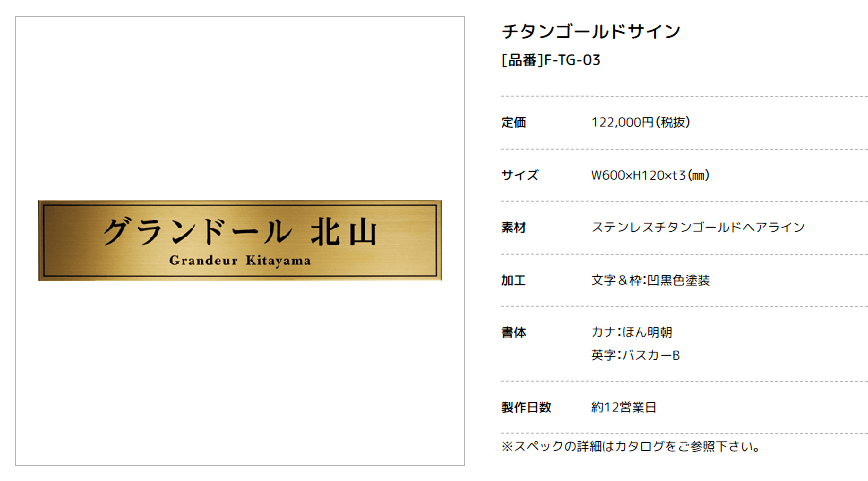 美濃クラフト F-TG-03 チタンゴールドサイン 館銘板/商業看板 [メーカー価格表の35%OFF+送料無料で販売中]