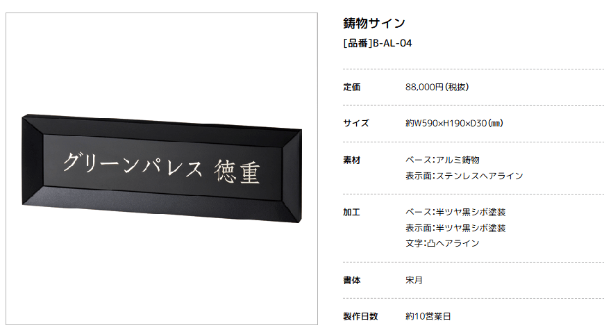 ◎商業施設・館銘板に最適:店舗看板、マンション名板、オフィスサインなど幅広く対応