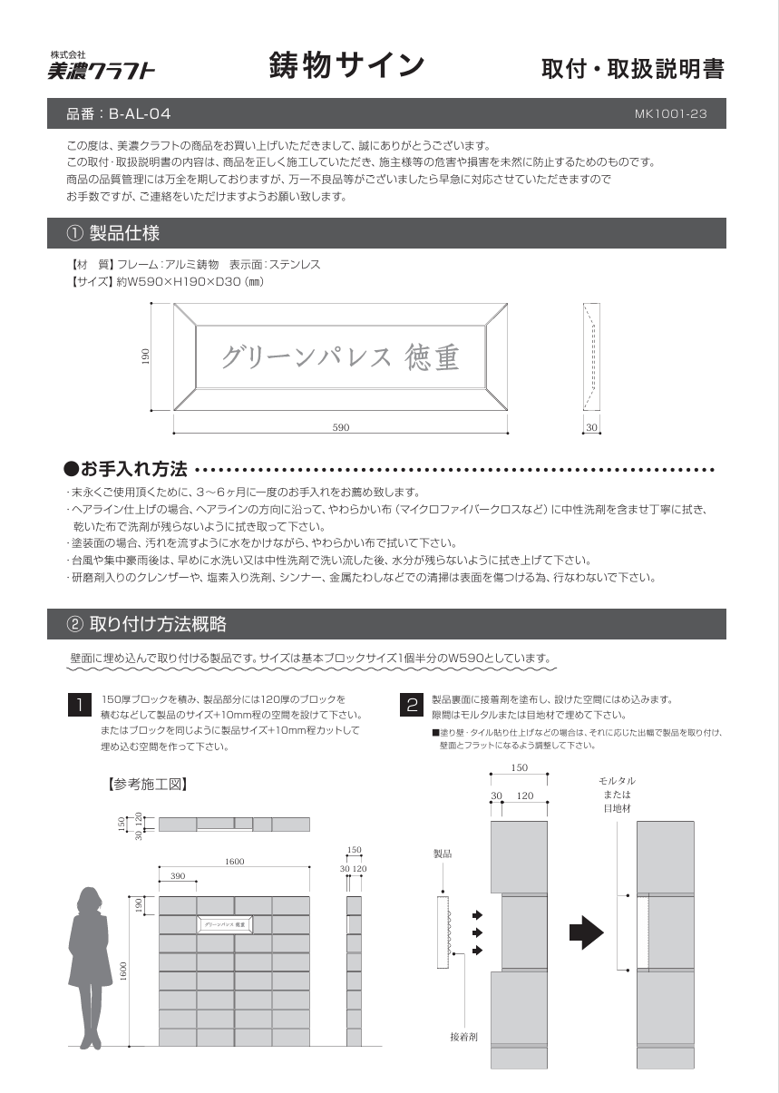 美濃クラフト B-AL-04 鋳物サイン 館銘板/商業看板 [メーカー価格表の35%OFF+送料無料で販売中]
