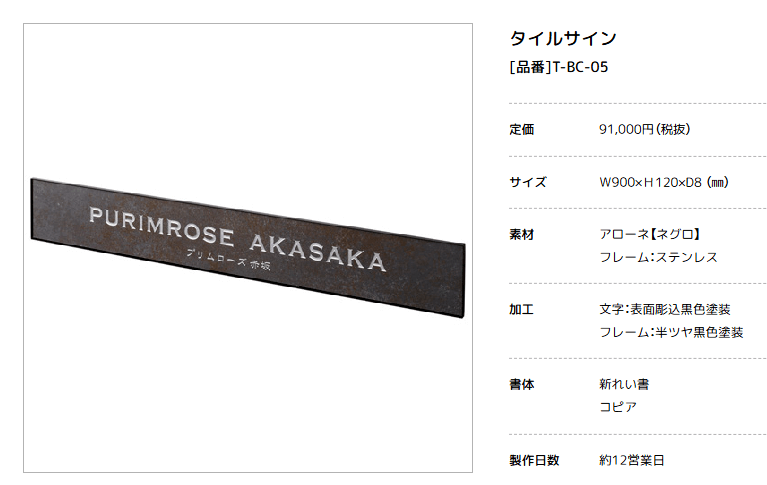 重厚感のあるタイル素材に繊細な彫刻文字を組み合わせた、上品で落ち着いた表情の表札シリーズ。