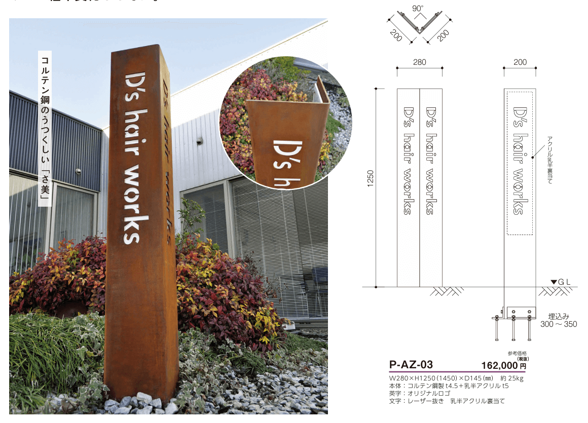 美濃クラフト P-AZ-03 コルテン鋼製サイン 館銘板/商業看板 [メーカー価格表の35%OFF+送料無料で販売中]