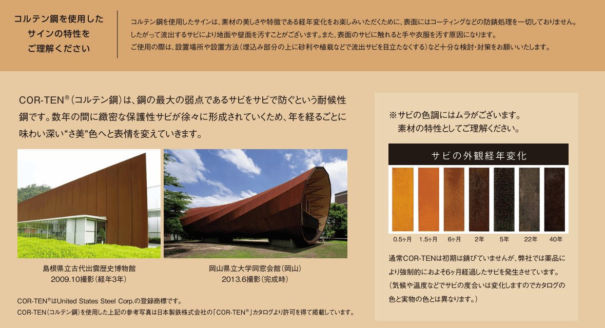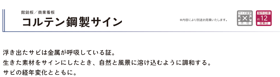 美濃クラフト P-AZ-03 コルテン鋼製サイン 館銘板/商業看板