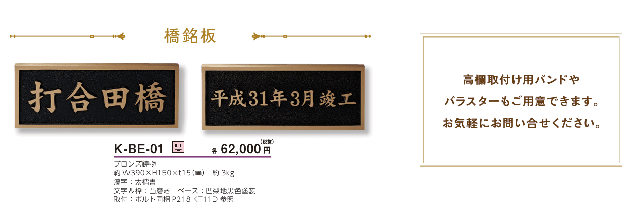 美濃クラフト K-BE-01 橋銘板 公共サイン 館銘板/商業看板 [メーカー価格表の35%OFF+送料無料で販売中]