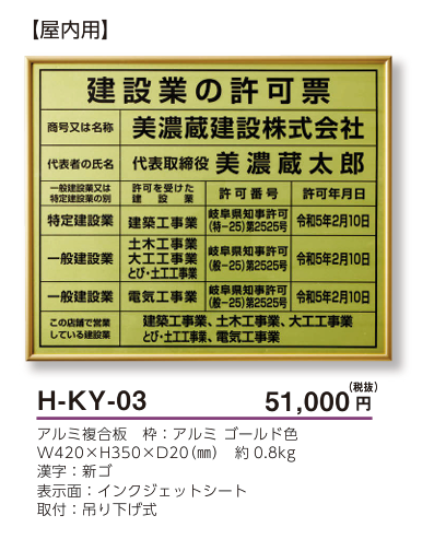 美濃クラフト H-KY-03 建設業の許可票 公共サイン 館銘板/商業看板 [メーカー価格表の35%OFF+送料無料で販売中]