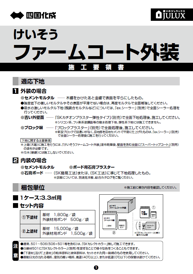 (既調合モルタルなど)については、SKタック(別売り)3倍液で、
