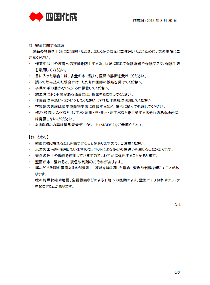 ◎内装材・外装材・舗装材 安全に関するご注意は、こちら