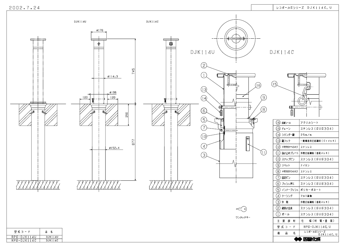 四国化成 レコポールS Dシリーズ DJK(上下式)DTK(取り外し式)DK(固定式)